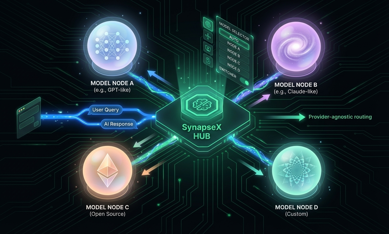 Choose from SynapseX-7B for fast responses, SynapseX-14B for balanced performance, or SynapseX-L70B for maximum capability. All models fine-tuned with SFT + DPO on quantum computing datasets.